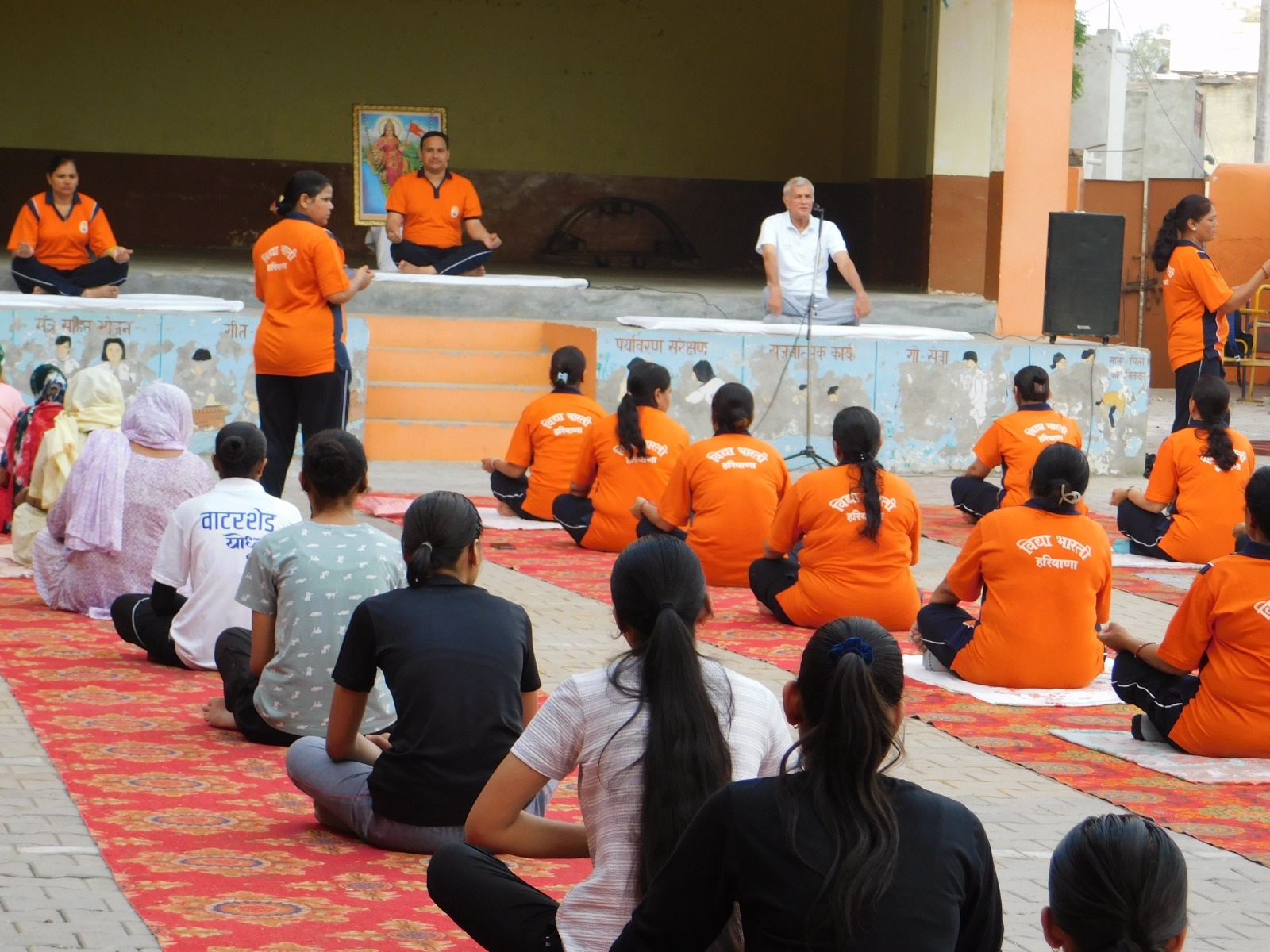 Space specified for relaxation, introspection and practicing yoga in Yoga Hall. Yoga is one of the fundamental subjects of Vidya Bharti. Regular periods are given to each and every class. Yoga session is also held during morning assembly. Sometimes, experts are invited to teach yoga so they can perform very well in it.
